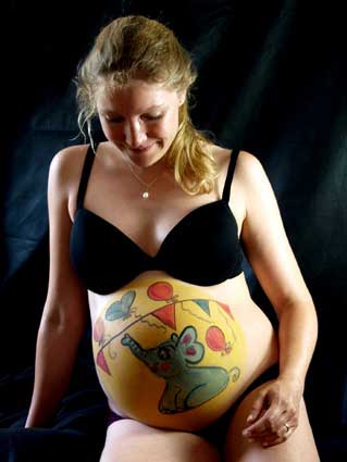 Ihren Babybauch bemale ich mit Profi-Hautschminfarben