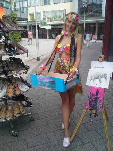 wo die lebende Modelle schon oefters den Kunden Kostuem und