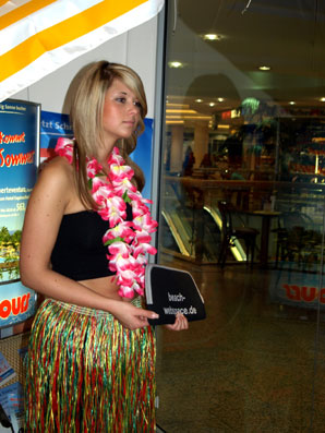Im Reisebuero Reisefreiheit im Vitacenter weckten mehrere Living Dolls