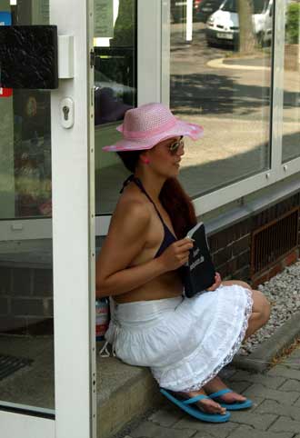 Im Sonnenstudio trug das Living Doll nur einen Bikini und